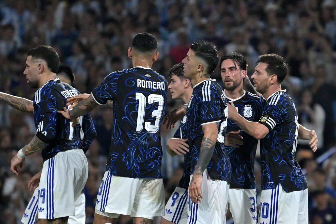 El elenco nacional se impuso con goles del delantero Julián Álvarez, a los tres minutos del primer tiempo, el astro argentino Lionel Messi, en 43 de la primera parte, el defensor Nicolás Otamendi de penal, en su despedida de la Selección y a los cuatro minutos de la segunda etapa, el defensor Dominic Chanda, en contra, cuando iban 22 minutos del complemento, y el mediocampista Valentín Barco, en el tercer minuto de descuento.