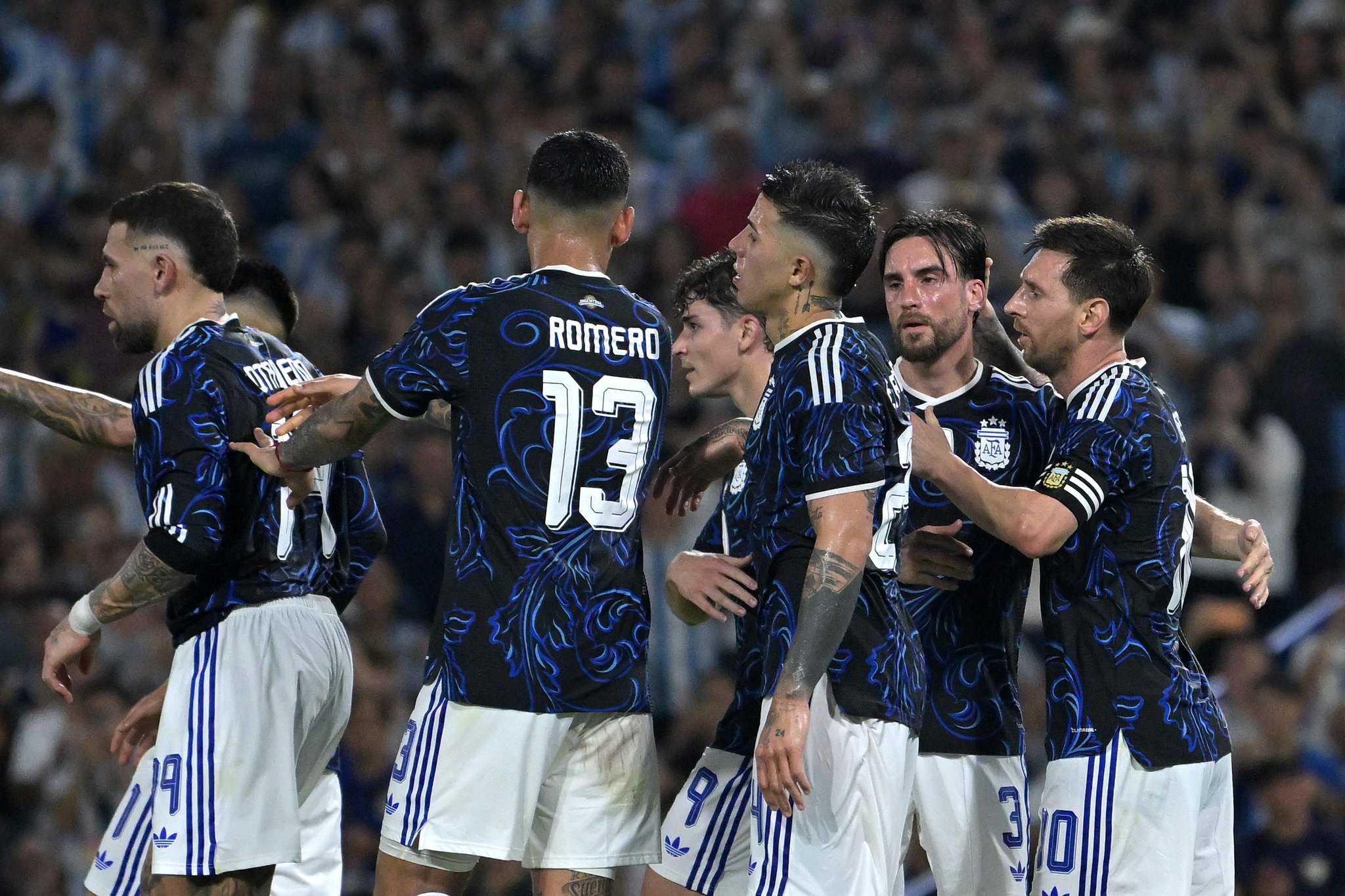 Argentina: Emiliano Martínez; Nahuel Molina, Cristian Romero, Nicolás Otamendi, Nicolás Tagliafico; Enzo Fernández, Leandro Paredes, Alexis Mac Allister; Lionel Messi, Julián Álvarez, Thiago Almada. DT: Lionel Scaloni.