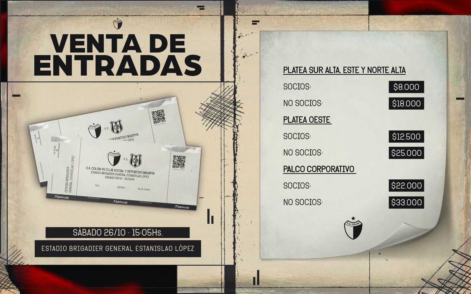 El club, informó: «Comenzó la venta de entradas para el partido de Colón vs. Deportivo Madryn. Las mismas pueden adquirirse a través de https://colon.boleteriavip.com.ar/event/description/913/colon-vs-dep–madryn«.