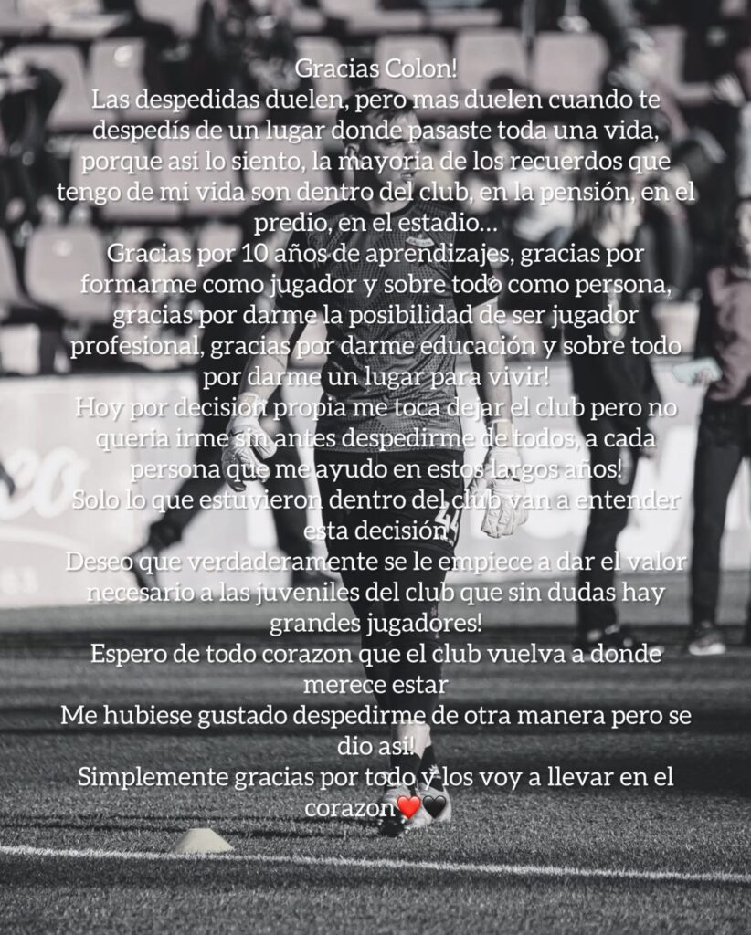 Sin chances en el club que lo cobijó durante su juventud, armó otra vez el bolso y se va para no volver, pero con un mensaje especial que vale la pena compartir: