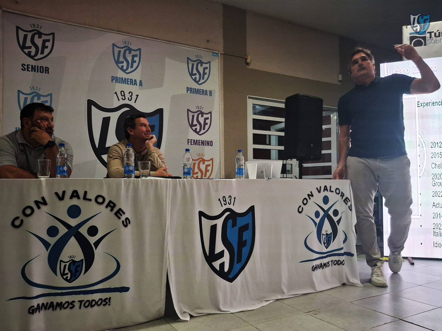 Al igual que Zavagno, Vivas brindó una nutrida presentación sobre táctica, técnica y estrategia que despertó consultas de los asistentes donde, por ejemplo, se encontraban ex jugadores como Luis Medero, Iván Furios y Rául Armando, y entrenadores de nuestra Liga como Mariano Bonzzi, Carlos García y Andrés Formento, entre otros. Otra gran tardenoche en el salón del predio Nery Alberto Pumpido con el ciclo de charlas y capacitaciones «Fútbol y un poco más», jornada por la que queremos agradecer a Luciano Zavagno y Claudio Vivas por su tiempo y dedicación, mostrando su compromiso con la educación y capacitación que la Liga Santafesina persigue con apoyo del Gobierno de Santa Fe.
